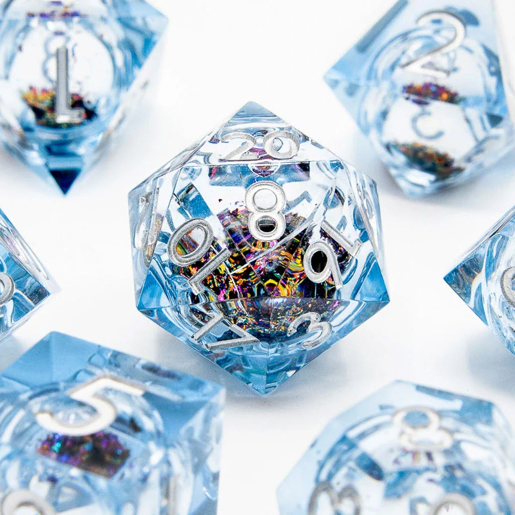 Embark on magical adventures with the Liquid Core Sharp Edged 7 Piece Set, where each roll brings a touch of spectacle and precision to your Dungeons and Dragons gameplay.