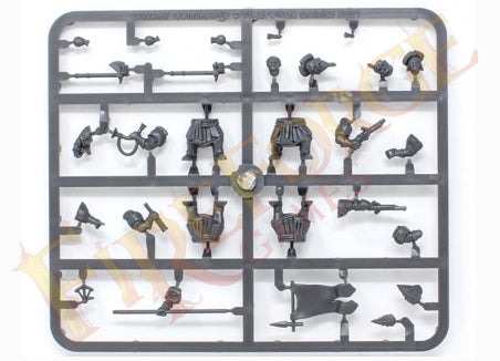 This box will allow you to assemble 12 figures; up to 12 crossbowmen with pavise option. The Command options will allow you to assemble one Leader, one Musician and one Standard Bearer.