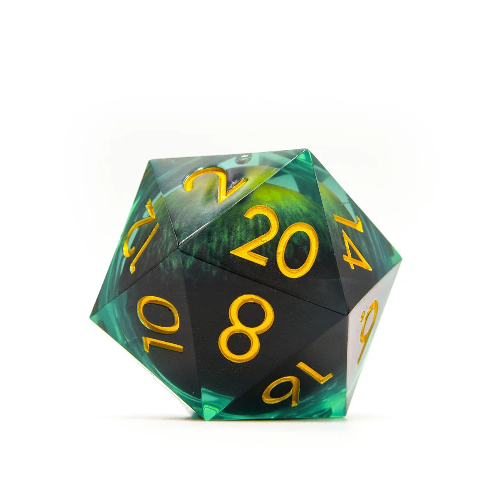 This oversized 50mm D20 die is designed with both beauty and intrigue in mind. The smooth liquid core ensures the eyeball moves seamlessly, creating a visual spectacle that draws everyone’s attention. With designs inspired by mythical creatures and eerie legends, it’s a striking addition to any collection.