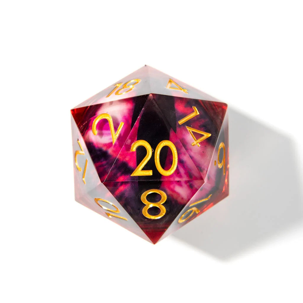 This oversized 50mm D20 die is designed with both beauty and intrigue in mind. The smooth liquid core ensures the eyeball moves seamlessly, creating a visual spectacle that draws everyone’s attention. With designs inspired by mythical creatures and eerie legends, it’s a striking addition to any collection.