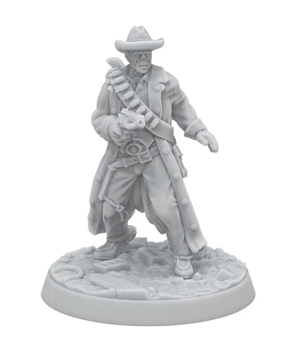 This Fallout: Wasteland Warfare set contains three 32mm scale high-quality multi-part resin miniatures with a 30mm scenic base, and one 32mm scale high-quality multi-part resin miniature with a 40mm scenic base, and Instruction Booklet.