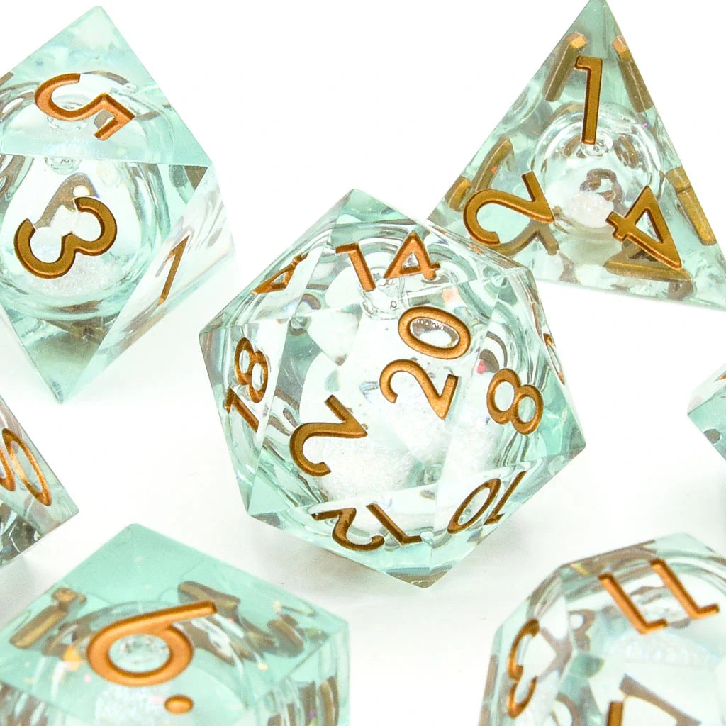 Embark on magical adventures with the Liquid Core Sharp Edged 7 Piece Set, where each roll brings a touch of spectacle and precision to your Dungeons and Dragons gameplay.