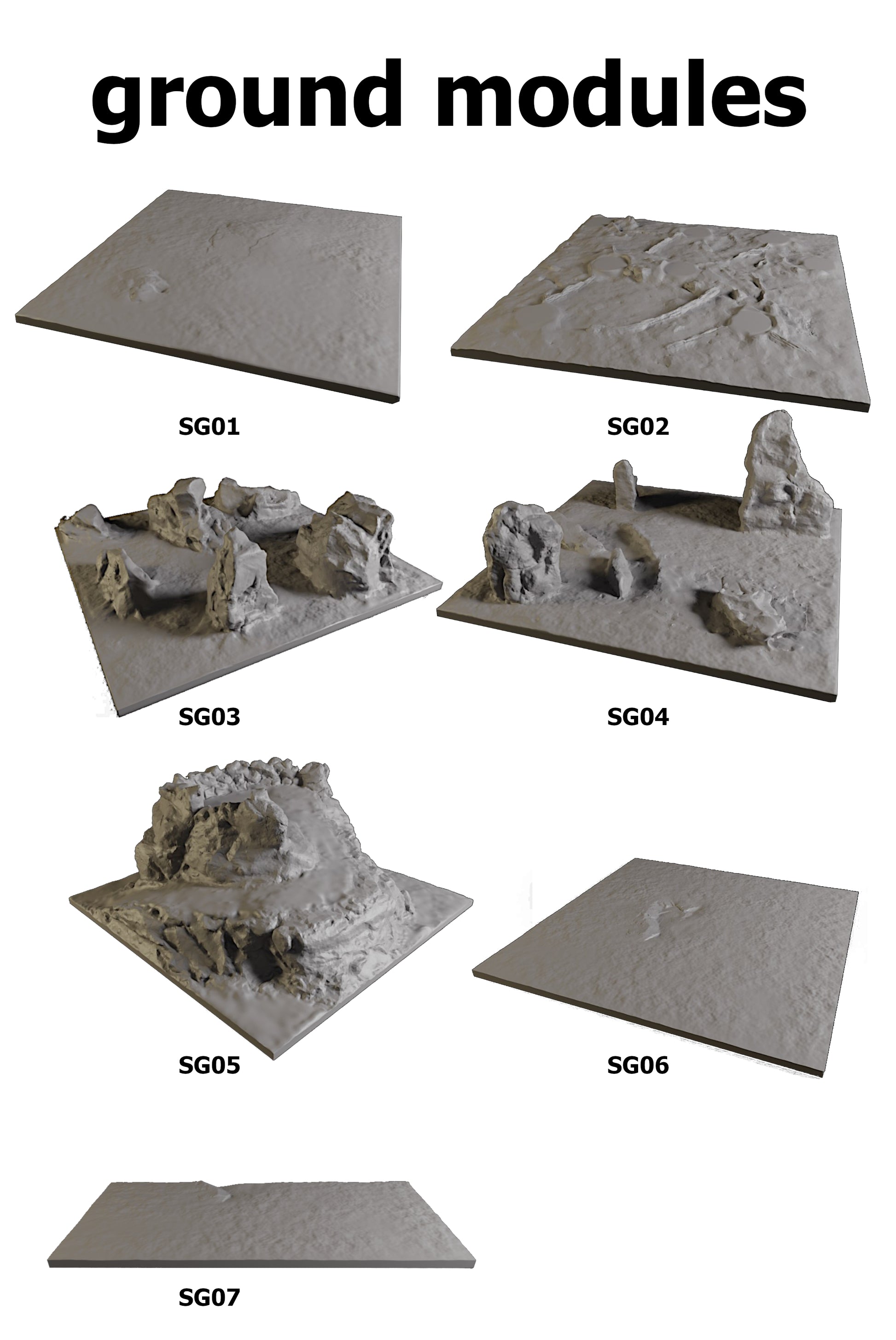 These 20cmx20cm or 8"x 8" modular terrain pieces are perfect for creating battlefield terrain for historical, fantasy or sci-fi table top wargames/RPG's. Tiles from different modules can be connected to create fully custom layouts, to suit your needs.