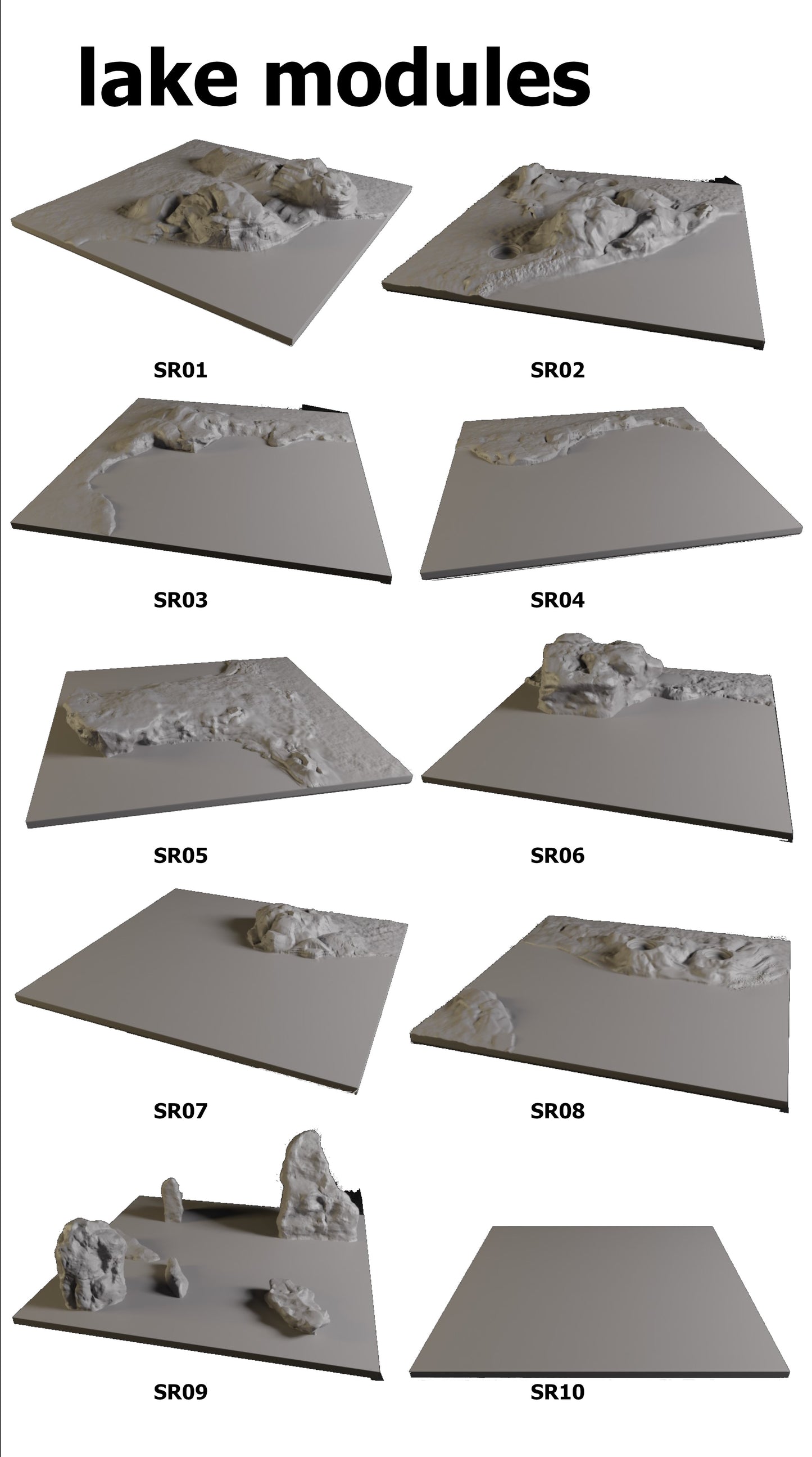 These 20cmx20cm or 8"x 8" modular terrain pieces are perfect for creating battlefield terrain for historical, fantasy or sci-fi table top wargames/RPG's. Tiles from different modules can be connected to create fully custom layouts, to suit your needs.