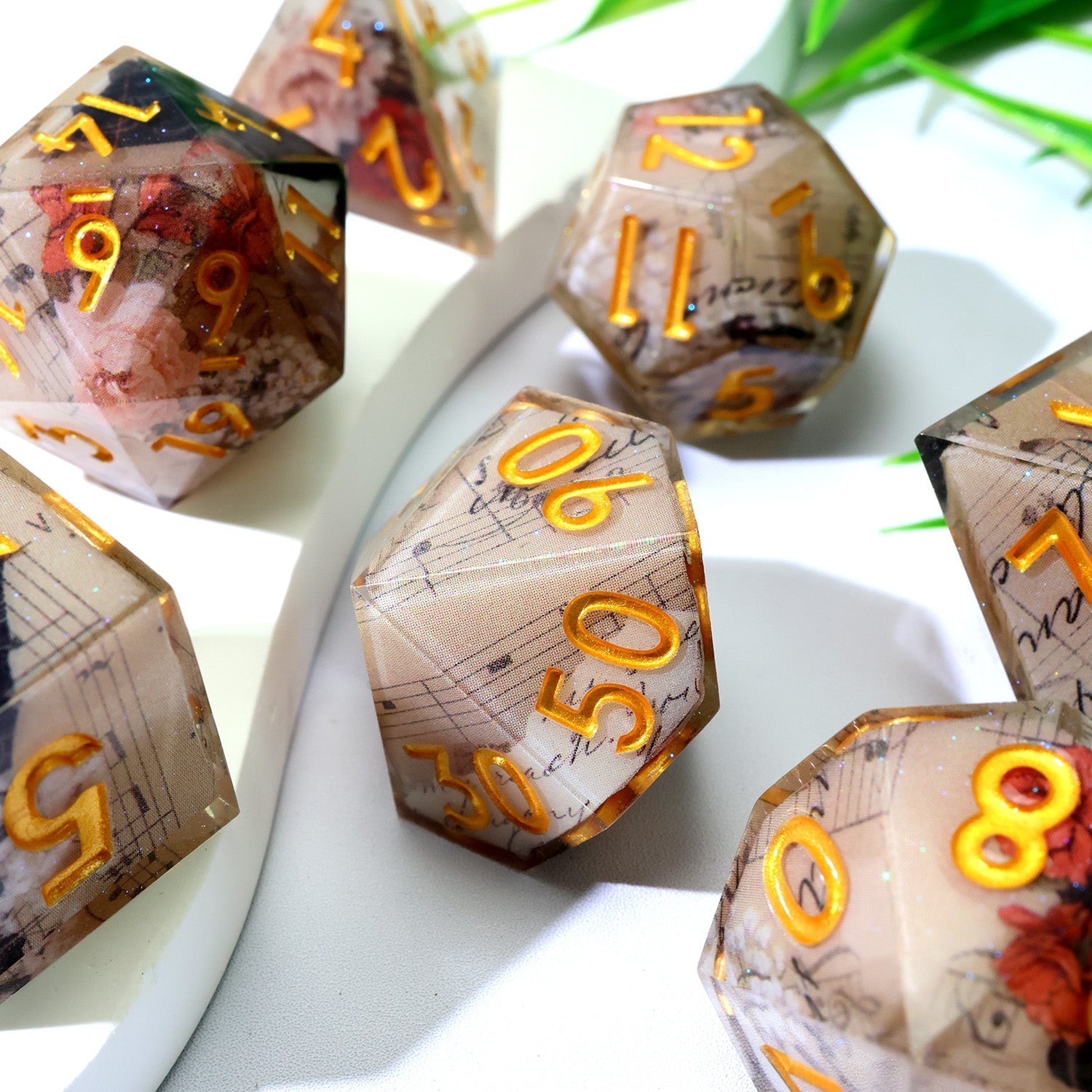 Every Art Core Sharp Edge dice set is meticulously handmade, ensuring that each piece is unique and of the highest quality. The sharp edges guarantee fair rolls, while the beautifully detailed core designs—ranging from vibrant flora to enchanting fauna—add an element of artistry to your gameplay. These dice are a perfect blend of form and function, designed to captivate both players and collectors alike.