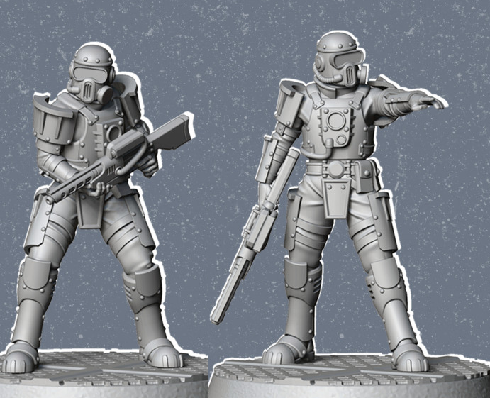 Heavy Troopers which are perfect for post apocalypse and/or sci-fi use on 30mm bases.