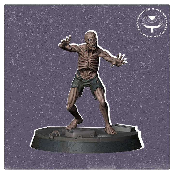 Zombies which are perfect for post apocalypse and/or sci-fi use on 30mm bases.